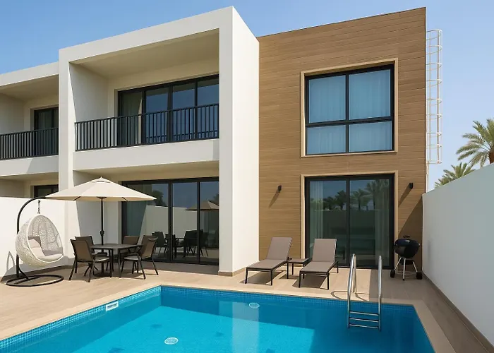 La villa Townhouse Ras Al Khaimah si trova nel quartiere Al Hamra Village, a 6 km da Iceland Water Park, e vanta una piscina e una vista sul giardino. Gli ospiti possono praticare windsurf, immersioni ed escursioni a piedi presso la villa, situata a circa 10 minuti in auto dal Bab Al Bahr.